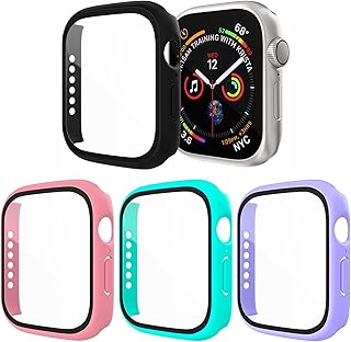Apple Watch用ケース ハードPCバンパーケース 保護カバー フレーム 強化ガラス スクリーンプロテクター iWatch用 ブラック/ピンク/ラベンダー/ターコイズ(ブラック、ラベンダー、ピンク、ターコイズ、38mm) 4個パック