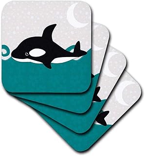 (set-of-4-Soft) - 3dRose cst_58603_1 Cute Orca Whale in The Ocean at Night-Soft Coasters, Set of 4