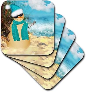 (set-of-4-Soft) - 3dRose Sandy Beach Sandman with ocean View Fun Spoof on A Snowman. - Soft Coasters, Set of 4 (cst_173007_1)
