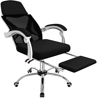 SOHAPI オフィスチェア デスクチェア 椅子 事務椅子 勉強椅子 パソコンチェア ワークチェア キャスター メッシュ通気性 座面360°回転 男女兼用 昇降機能付き 調節可能アームレスト 静音 135°リクライニング (黒・白, ハイバックチェア・フットレスト付き)