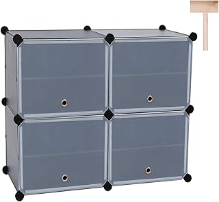 C&AHOME シューズラック 4段 プラスチック製 靴収納オーガナイザー ドア付き 靴収納キャビネット 仕切り付き リビングルーム 玄関 廊下 廊下に最適 長さ32.8インチ x 幅12.8インチ x 高さ25.2インチ ブラック