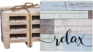 Relax ブルーグリーン ラッシュルック 4 x 4インチ ドライパインウッドパレットコースター 4個パック