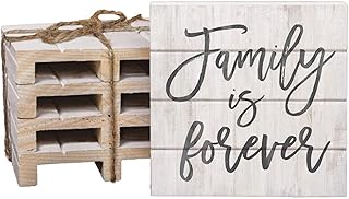 Family Is Forever ホワイトウォッシュ 4 x 4インチ ドライパインウッドパレットコースター 4個パック