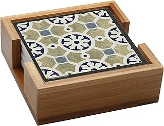 Thirstystone Stone Drink Coaster Set World Indigo Tiles - Wood Holder Included, Multicoloured