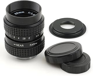 (バシュポ) Pixco CCTVレンズ 25mm f/1.4 Cマウントテレビカメラレンズ - Micro Four Thirds カメラ (ブラック) +Cマウントアダプター 撮影 用 (C-M4/3)