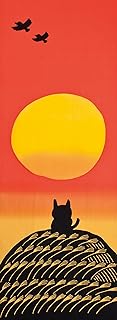 プレーリードッグ 和布華 手拭い 手ぬぐい 秋模様 和柄 日本製 (夕日ネコ) サイズ:約33×90cm