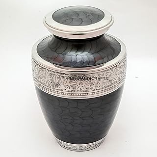 Hind Handicrafts 遺灰用シルバー彫刻骨壺 大人用 手作り 大きな骨壺 7インチ x 7インチ x 10インチ 220ポンド 100kg バッグ付き 7" x 7" x 10" ブラック hhcurn7