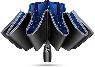 JATEN 折りたたみ傘 逆折り式 自動開閉 逆さ傘 反射板の傘の縁 128cm 10本骨 210Tファブリック 風に強い 梅雨対策 晴雨兼用 おりたたみ傘 軽量 メンズ 収納ポーチ付き(ブルー)