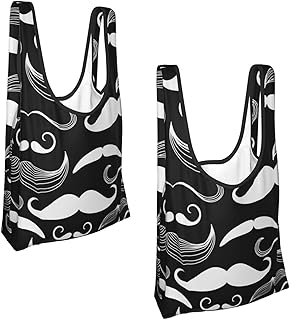 エコバッグ 折りたたみ 買い物袋 かわいい 黒白い 口ひげ ショッピングバッグ コンビニバッグ お弁当バッグ コンパクト 収納バッグ メンズ レディース 人気 防水 耐久 大容量 再利用可能 環境にやさしい 携帯便利 2枚セット
