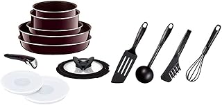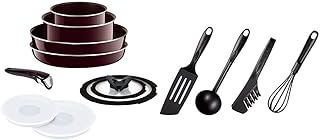 ティファール フライパン 鍋 10点 セット ガス火専用 「 インジニオ・ネオ マホガニー・プレミア セット10 」 チタン プレミア 5層コーティング L63192 取っ手のとれる T-fal 【IH非対応】 & キッチンツール 4点 セット フライ返し おたま トング 泡だて器 エピスセット4 チャネル限定 K001S4【セット買い】