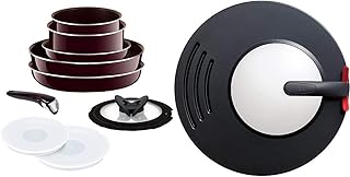 ティファール フライパン 鍋 10点 セット ガス火専用 「 インジニオ・ネオ マホガニー・プレミア セット10 」 チタン プレミア 5層コーティング L63192 取っ手のとれる T-fal 【IH非対応】 & フライパン 蓋 24~30cm 対応 K09996【セット買い】