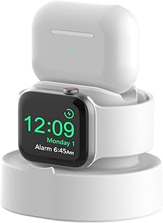 SPORTLINK アップルウォッチ 充電 スタンド Apple Watch Series 7 / 6 / SE / 5 / 4 / 3 / 2 / 1 Airpods /Airpods Pro/Airpods 3 充電 スタンド 2 in 1 充電 スタンド Apple Watch 充電 スタンド 41mm 45mm 38mm 40mm 42mm 44mm 全機種対応 アップルウォッチ 卓上 スタンド Apple Watch 充電 スタンド スマホ スタンド デスク ドック すたんど ホルダー 卓上 充電ケーブル 収納 ナイトスタンド クレードル (ホウイト)